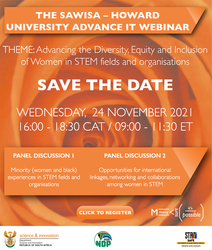 The Department of Science and Innovation (DSI) invites you to the fourth and final 2021 South African Women in Science Awards (SAWiSA) Webinar. This webinar will be held under the banner of SAWiSA- Howard University (HU) Women in STEM programme.