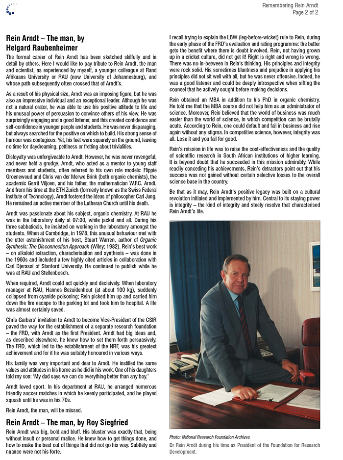 The National Research Foundation regrets to announce the passing of Gerhard von Gruenewaldt, a former vice-president of the organisation and one of its driving forces in its progress since its establishment.