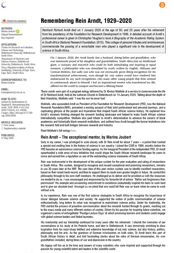 The NRF gratefully acknowledges Gerhard’s contribution to the advancement of science in South Africa.